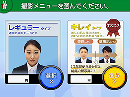 証明写真機"Ki-Re-i"には、よりキレイに証明写真の撮影をする「キレイタイプ」があります。撮影時に選択いただくことでご利用いただけます。10年間使う大切なマイナンバーカードの申請にオススメです。