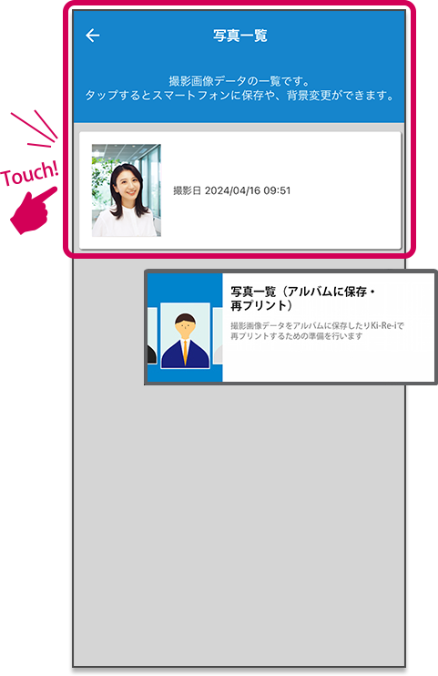 ご利用前に、無料アプリ「Ki-Re-i Photo」をダウンロードして下さい。